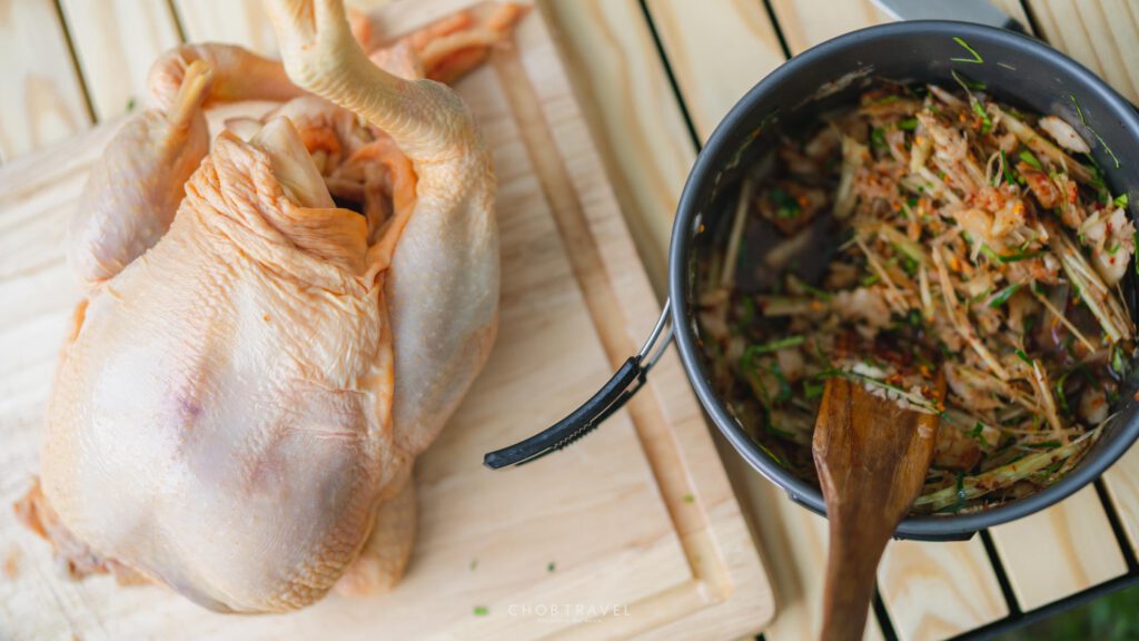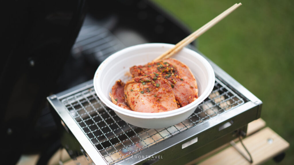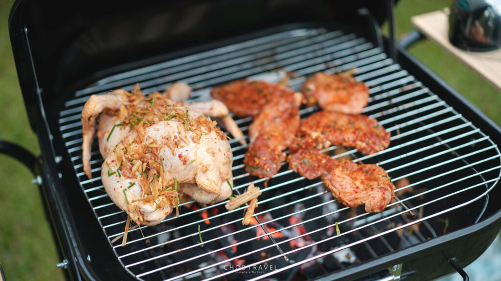และอีกอย่างก็คือการประกอบอาหาร รีสอร์ทให้ปิ้งย่างได้ พวกเราเลยไม่รีรอที่จะปิ้งไก่ในตำนานแบบ อา ฉลอง ภักดีวิจิตร ฮ่าๆ