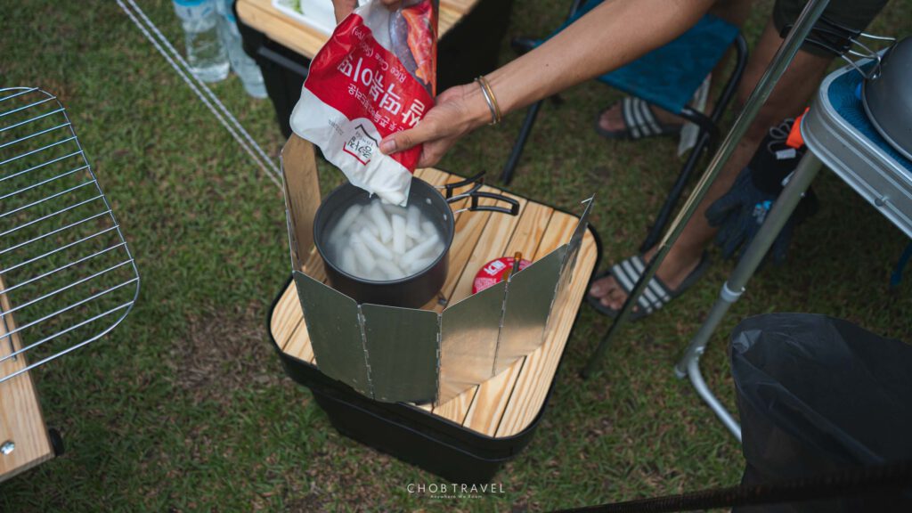 ทางรีสอร์ทสามารถให้ทำอาหารได้ และทางเข้าก็มีอาหารขาย และไม่ไกลจากร้านค้ามากนัก แต่สำหรับสายแคมป์ปิ้ง คงไม่พลาดที่จะเตรียมอาหารกันมาทำอยู่แล้ว