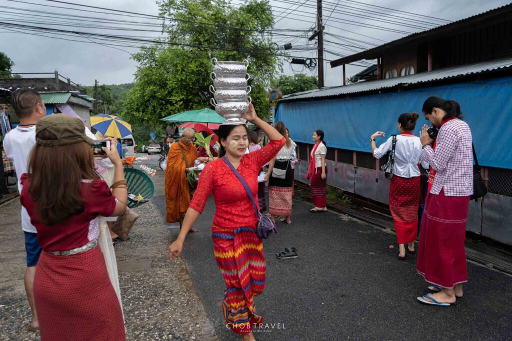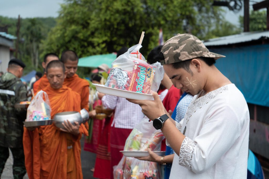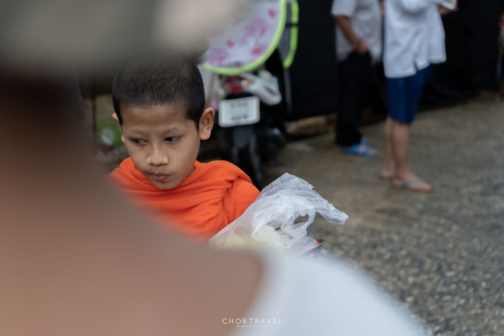 อิ่มแล้วก็กลับไปพักเหนื่อยนอนให้เต็มอิ่ม เพื่อตื่นเช้าไม่ใส่บาตรในตอนนเช้ากันที่ สะพานมอญ โดยในช่วงเช้าของที่นี่นั้นจะมีผู้คนออกมาใส่บาตรกันมากมาย ประแป้งทานาคาหน้าขาววออกไปแต่เช้า โดยเวลาพระจะเดินบิณฑบาตตั้งแต่หกโมงเช้าถึงเจ็ดโมงครึ่ง