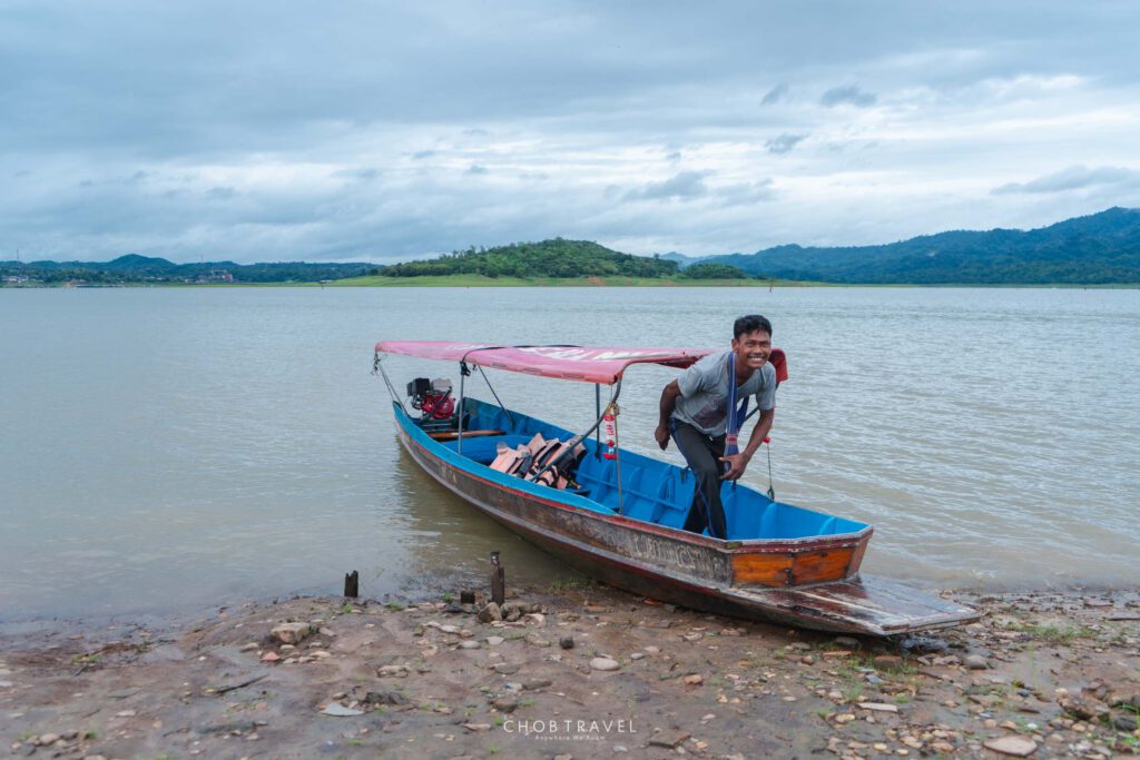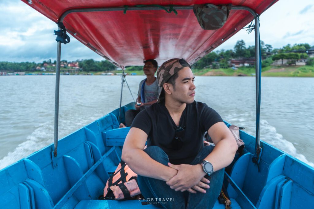 พี่สมหวังทำหน้าที่ขับเรือ ใจดีมากยิ้มทั้งวัน!! ใครมาสะพาญมอญ อยากเที่ยวชมวัดเก่า ติดต่อพี่สมหวัง สะพานมอญได้เลยครับ