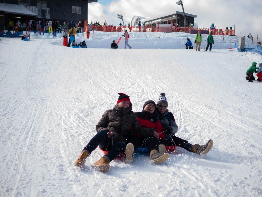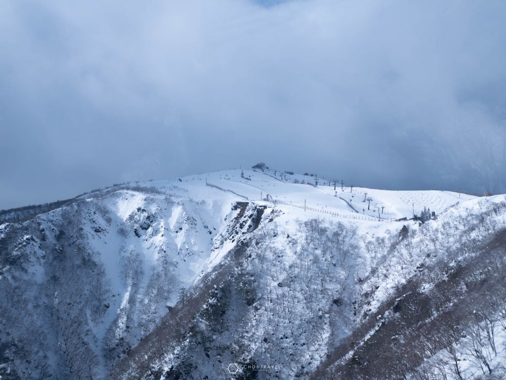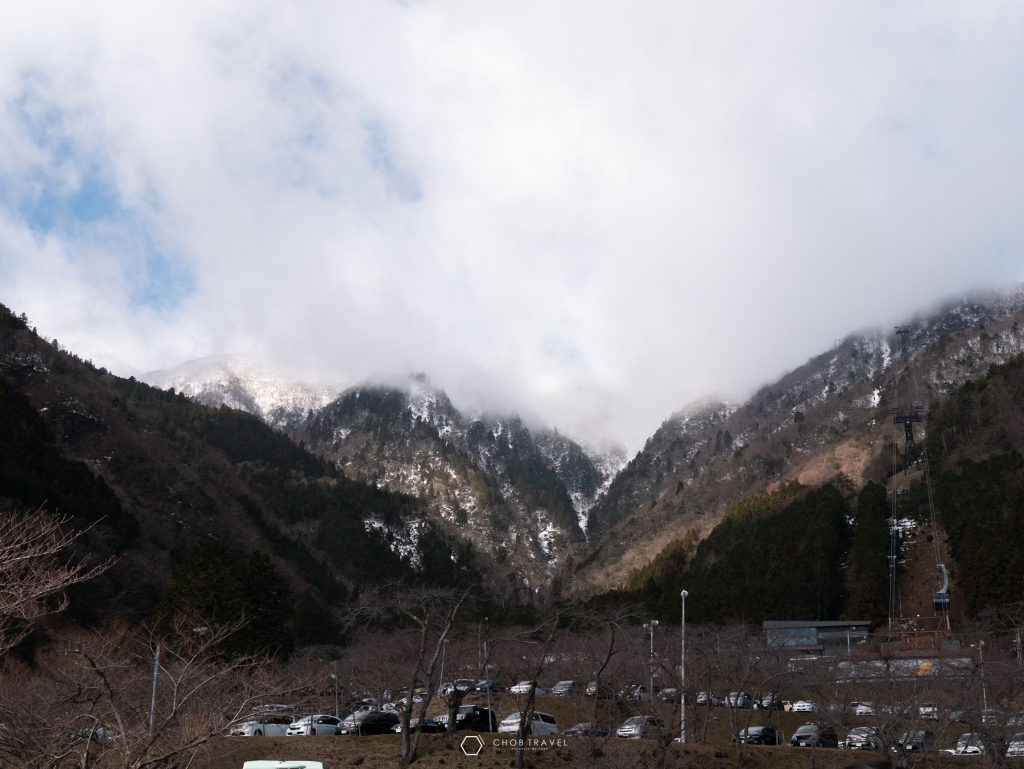 พอถึงเราก็จะเห็นยอดเขาที่เราจะไปเล่นสกีกัน ค่อนข้างสูงมาก จึงต้องนั่งกระเช้าขึ้นไปด้านบน