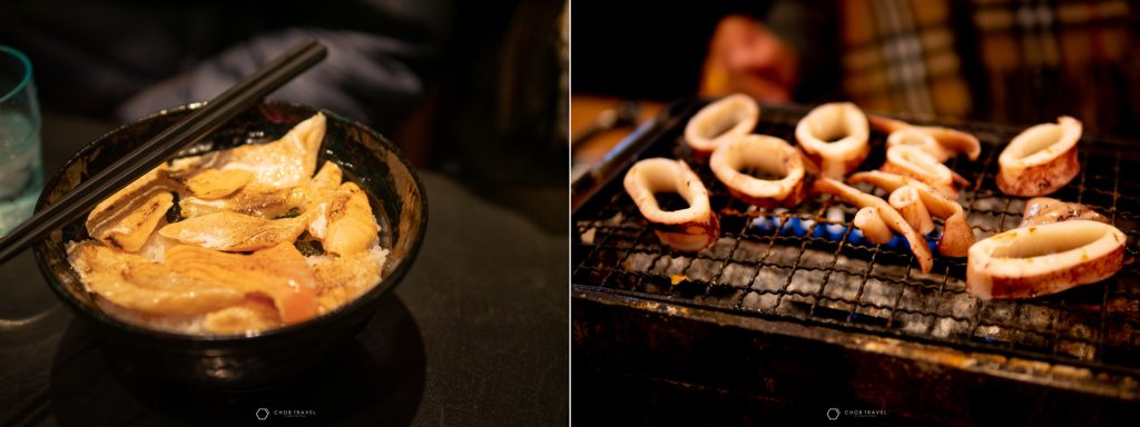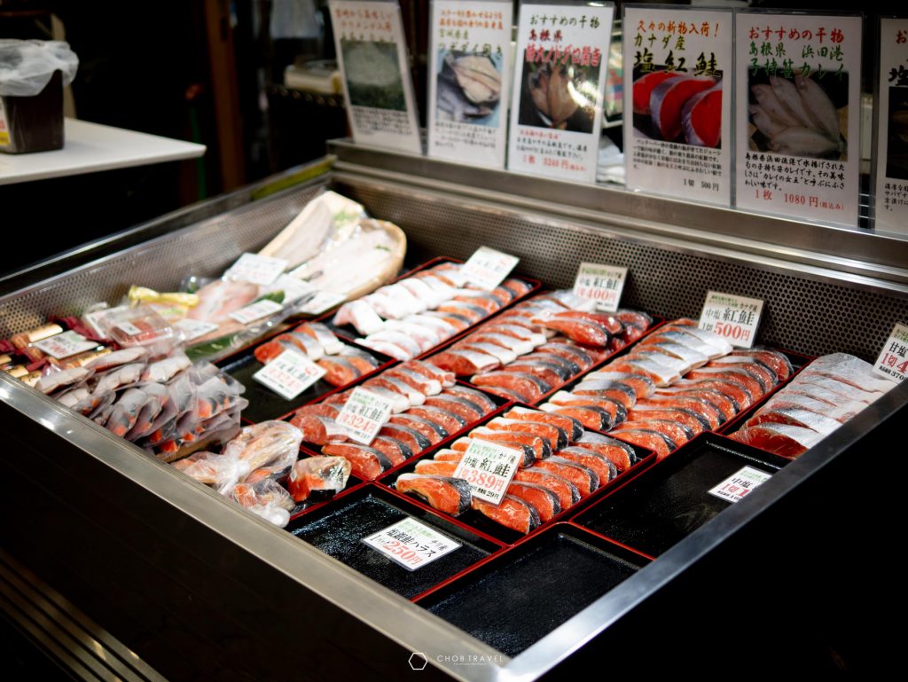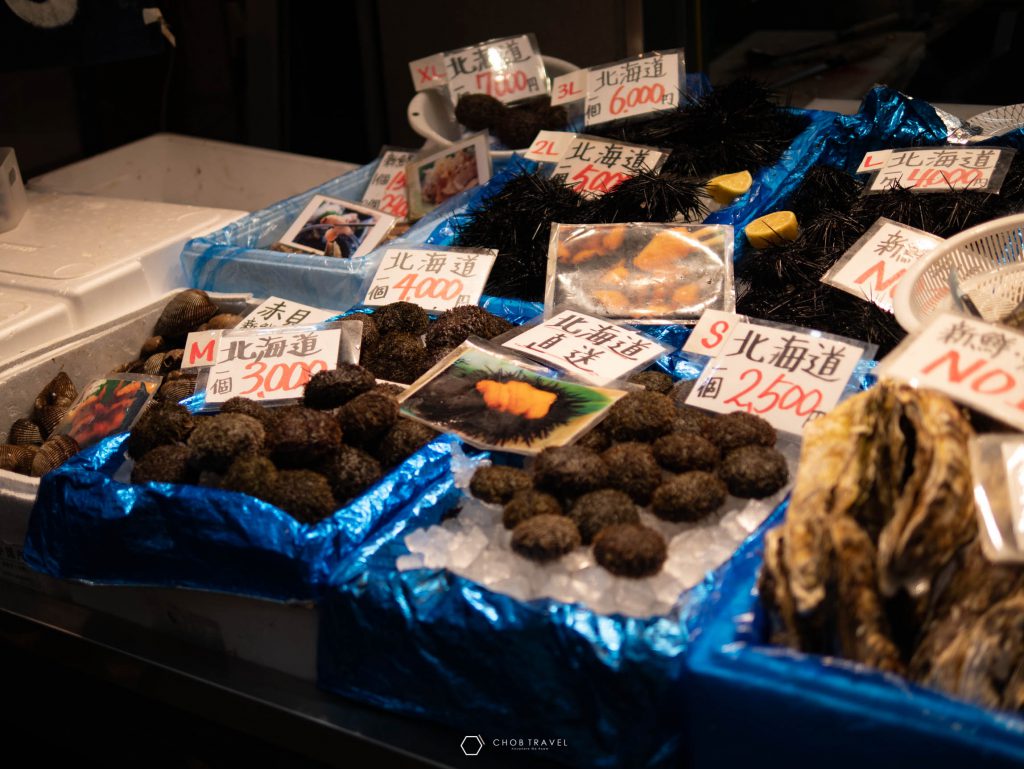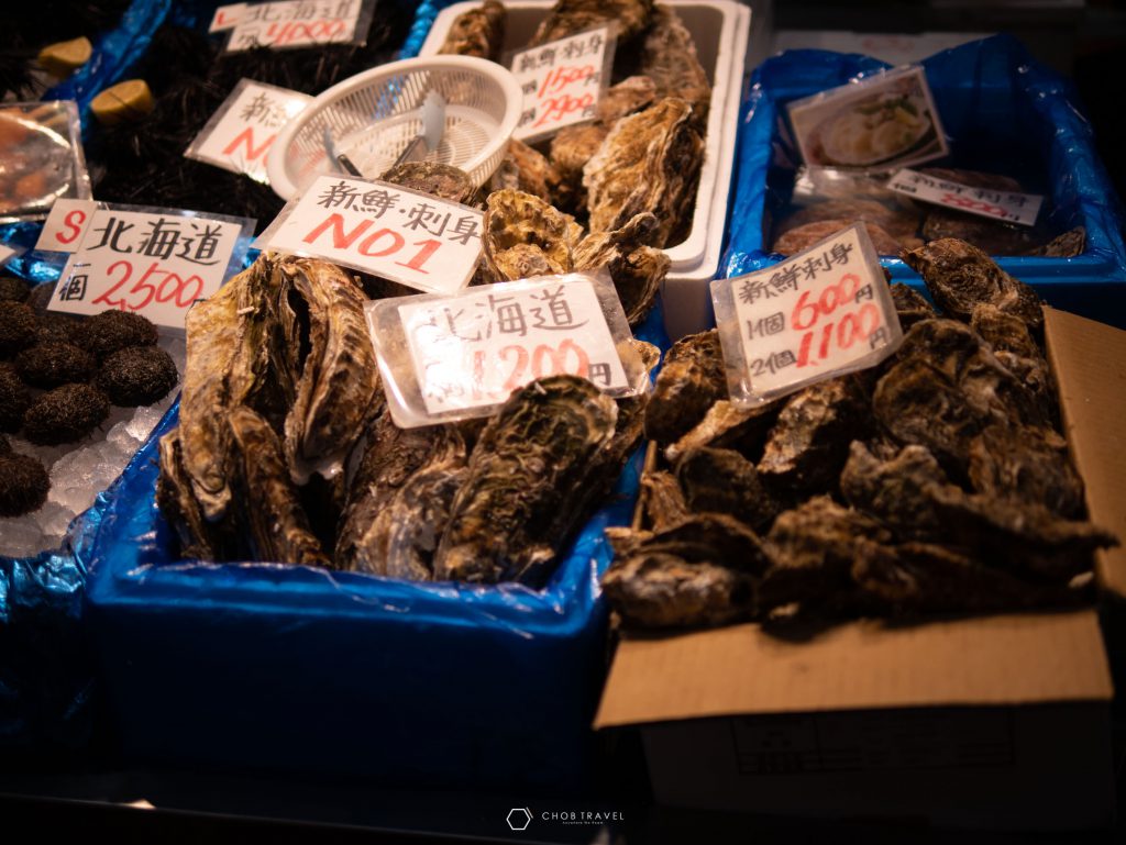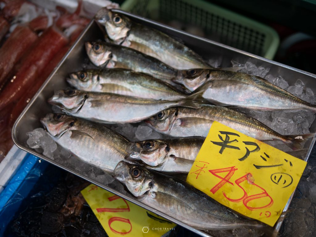 เอาใจคนชอบอาหารซีฟู้ด อาหารทะเลสดๆจัดเต็มจากทะเล โดยเมื่อเข้ามาในตลาดจะพบกับ ผัก ผลไม้ นานาชนิคมากมายเรียงกันไปตลอดทาง ที่บอกได้เลยว่าสายกินอาจจะมีอาการตัวแตกได้ ไม่ว่าจะเป็นปลาหมึก ซูชิ อูนิ เนื้อวัว ทั้งของคาวของหวาน มากจนเลือกไม่ถูกกันเลยทีเดียว ซึ่งการเที่ยวในวันที่ 2 ของผมนั้น ก็จะเป็นการหาของกินทั้งวันเลยครับในวันนี้